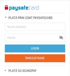 După ce introduci suma cu care vrei să alimentezi contul, se va deschide o fereastră, prin intermediul căreia te vei putea loga în contul tău de Paysafecard.