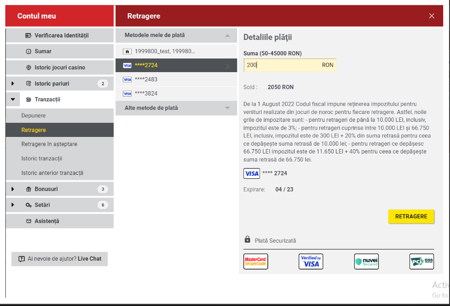 În momentul în care înregistrezi o cerere de retragere ți se vor afișa în cadrul unui mesaj de tip pop-up următoarele detalii: