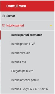 Biletele de pariuri palsate pot fi vizualizate la rubrica ”Istoric pariuri” din ”Contul meu”. La ”Istoric anterior pariuri” vei putea vizualiza biletele de pariuri plasate înainte de lansarea noului site.