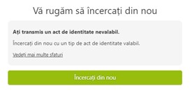 Dacă în urma scanării documentul nu este acceptat, vei fi informat cu privire la acest aspect și va trebui să reiei procesul, asigurându-te că noua poză respectă parametrii de verificare.